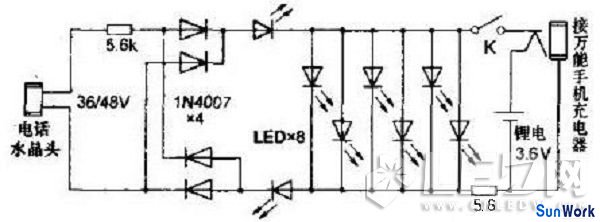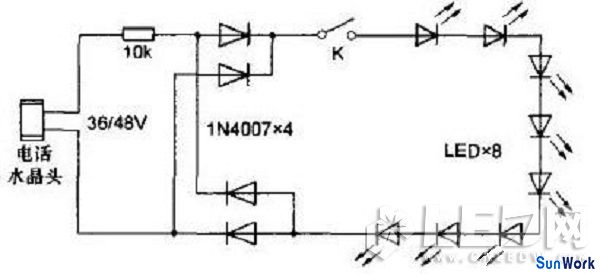 電話線供電LED燈電路圖